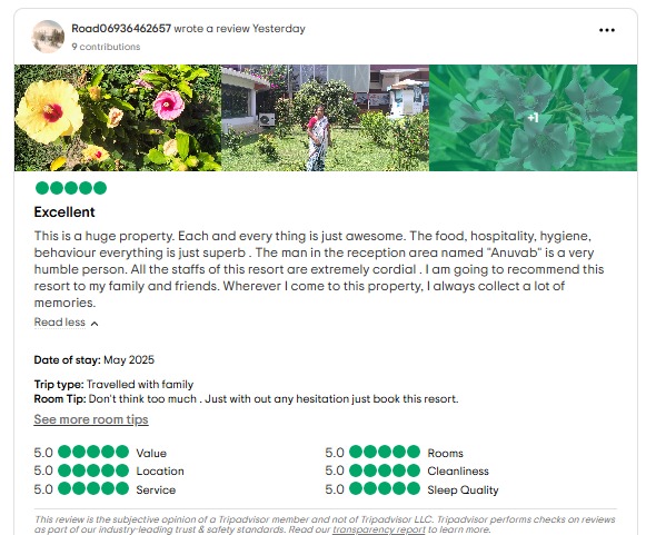 Parimal Das , Guest Huge resort, sea facing..rooms are not so clean..bathrooms are good, have wheelchair accessibility, have in house restaurants. The food is good but a bit overpriced. Had a great time with friends. Good place for a vacay stay with friends and family. This place also can be booked for any event like birthday, wedding, reception.